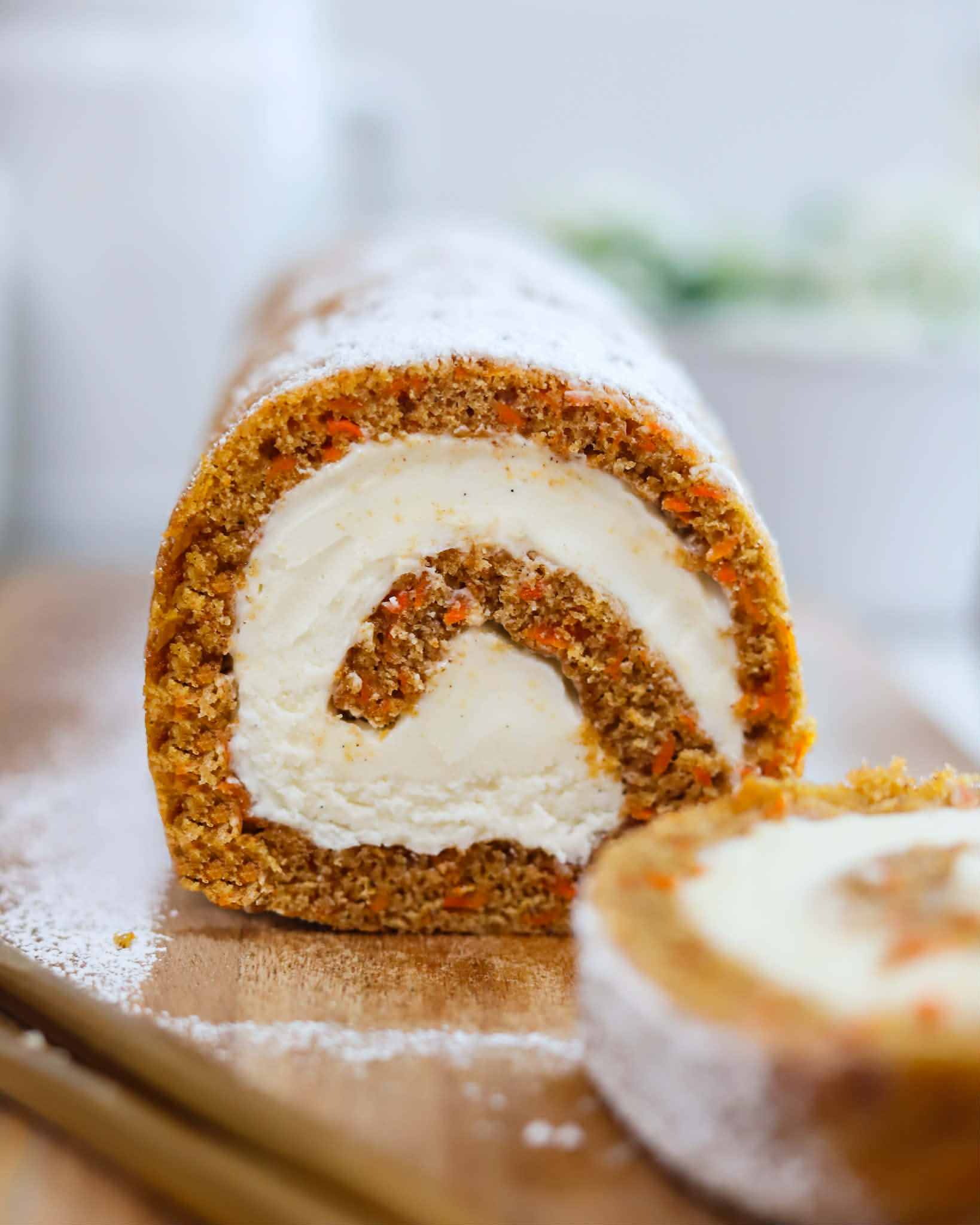 I feel like carrot cake is one of those desserts that people either love or… not so much. I love it, but totally understand why some people don’t. I was blessed with my grandmothers famous carrot cake recipe that everyone loved and now I can share it with you, but I have also had some other versions of carrot cake that just don’t hit the mark, so I get it… Today, we are making a carrot cake swiss roll. Yes, she is beautiful, but more importantly, she is moist, sweet and has a bold cake to filling ratio that is perfect for those of us that “love” carrot cake just for the frosting. If you love carrot cake or know someone who does and you don’t want to bake them something basic or predictable then you may want to give this swiss roll version of carrot cake a try. Let’s