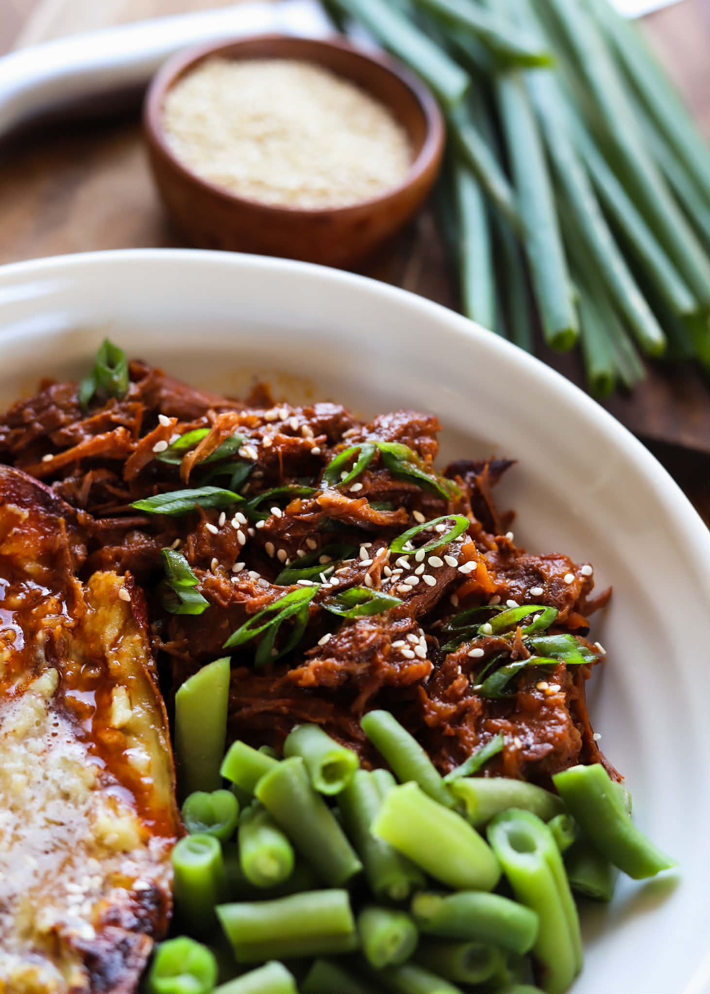 I am such a fan of the sweet, salty, citrusy umami of Asian flavors and this ponzu braised beef brings them into a cozy main course that I will happily eat all week long. All you need is a quick sear on your beef, sauté some vegetables, add garlic, ginger, gochujang, brown sugar and ponzu and let it braise away to tender perfection while you dream about how good its going to taste over rice, egg noodles or mashed potatoes. Let’s get started… One of the best things about braising beef is that it is a great way to make the tougher, cheaper cuts tender, so feel free to use chuck roast, brisket, shoulder, shanks… whatever you can find for a good price, because braising will bring the best out of it. Plus, we are using ponzu in our braising liquid and this is a wonderful tenderizer for beef too.