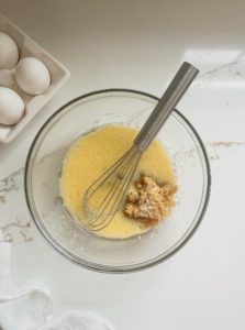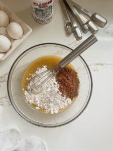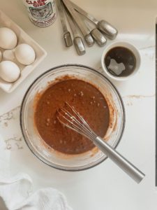 - Add a teaspoon of vanilla extract and 1/2 cup of brown sugar and whisk until fully incorporated