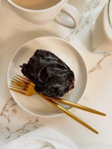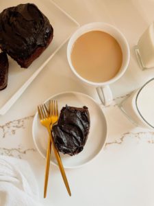 If you are wondering why “hot” coffee, allow me to explain. Adding hot liquid to this cake batter will help to dissolve the brown sugar and activate the baking soda along with adding moisture of course.
