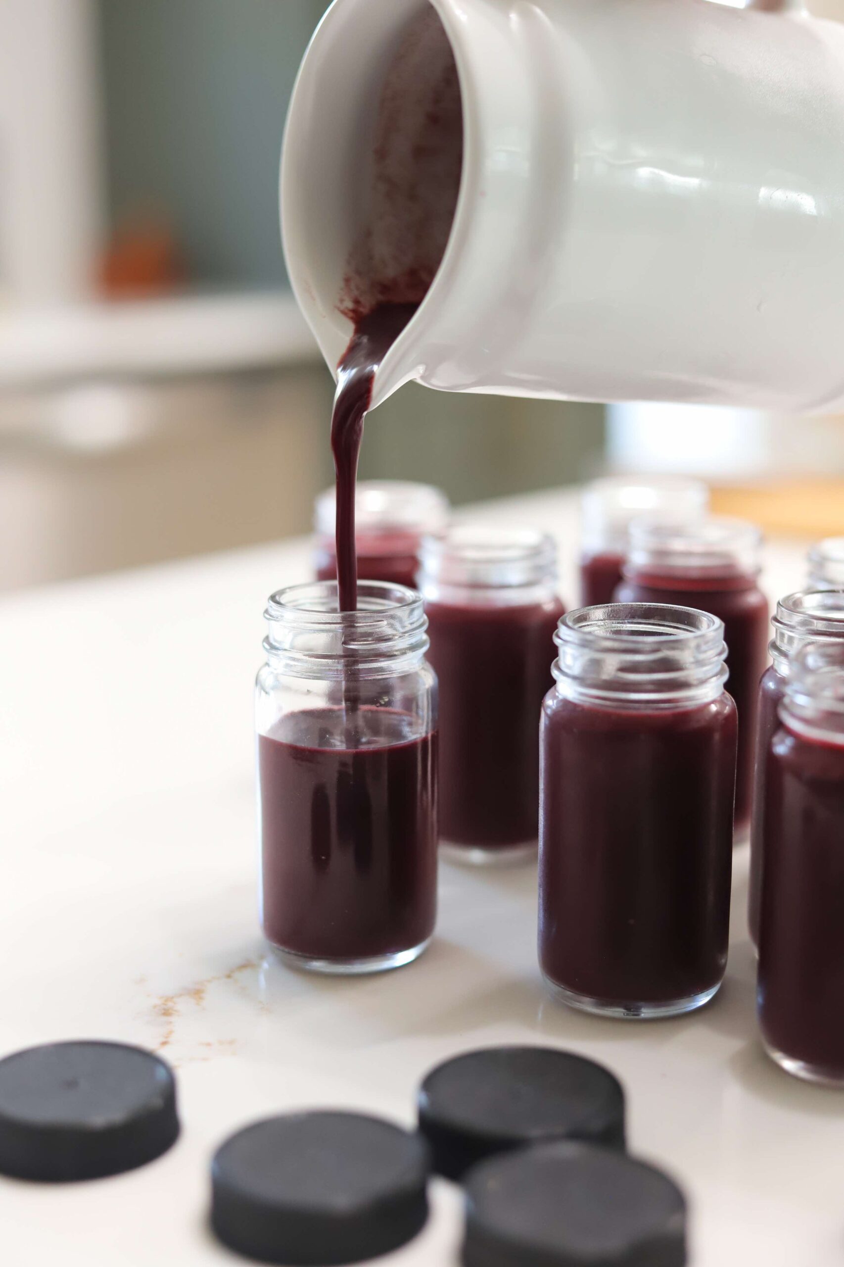 If you are making wellness shots for the family, it is really easy to double this recipe. Frozen açaí usually comes in 12 ounce packs and so do blackberries, so you can use the entire containers, which I love.