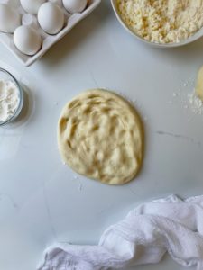 When it comes to shaping khachapuri, don’t stress about the measurements or uniformity too much. These little cheese boats are shaped free hand, so each one will look a little different and thats ok.