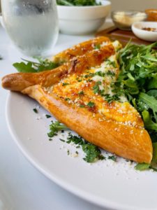 Once you’ve added the eggs, brush the dough with the remaining egg wash once more and return the khachapuri into a 350 degree oven and cook until the white are cooked to your liking. Technically, the cheese is hot enough to cook the egg white once they are mixed in, so if you are using fresh eggs, you don’t need to cook the eggs for longer than 2-3 minutes.