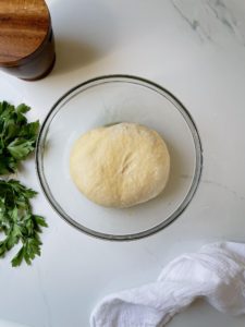 Cover the bowl with a kitchen towel or plastic wrap and let it rest for about 25 minutes in a warm place. We are looking for the dough to roughly double in size. This could take longer if your kitchen is cold, so you can either give the dough more time to rise or create a warmer environment for it to rest in…