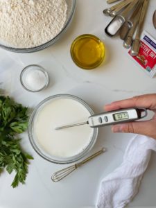 Note: The ideal temperature for the milk is between 100-100 degrees fahrenheit or it should feel like warm bath water. If the milk is too cold, the yeast won’t wake up, but if it is too hot, it can kill the yeast, so just keep it nice and warm.