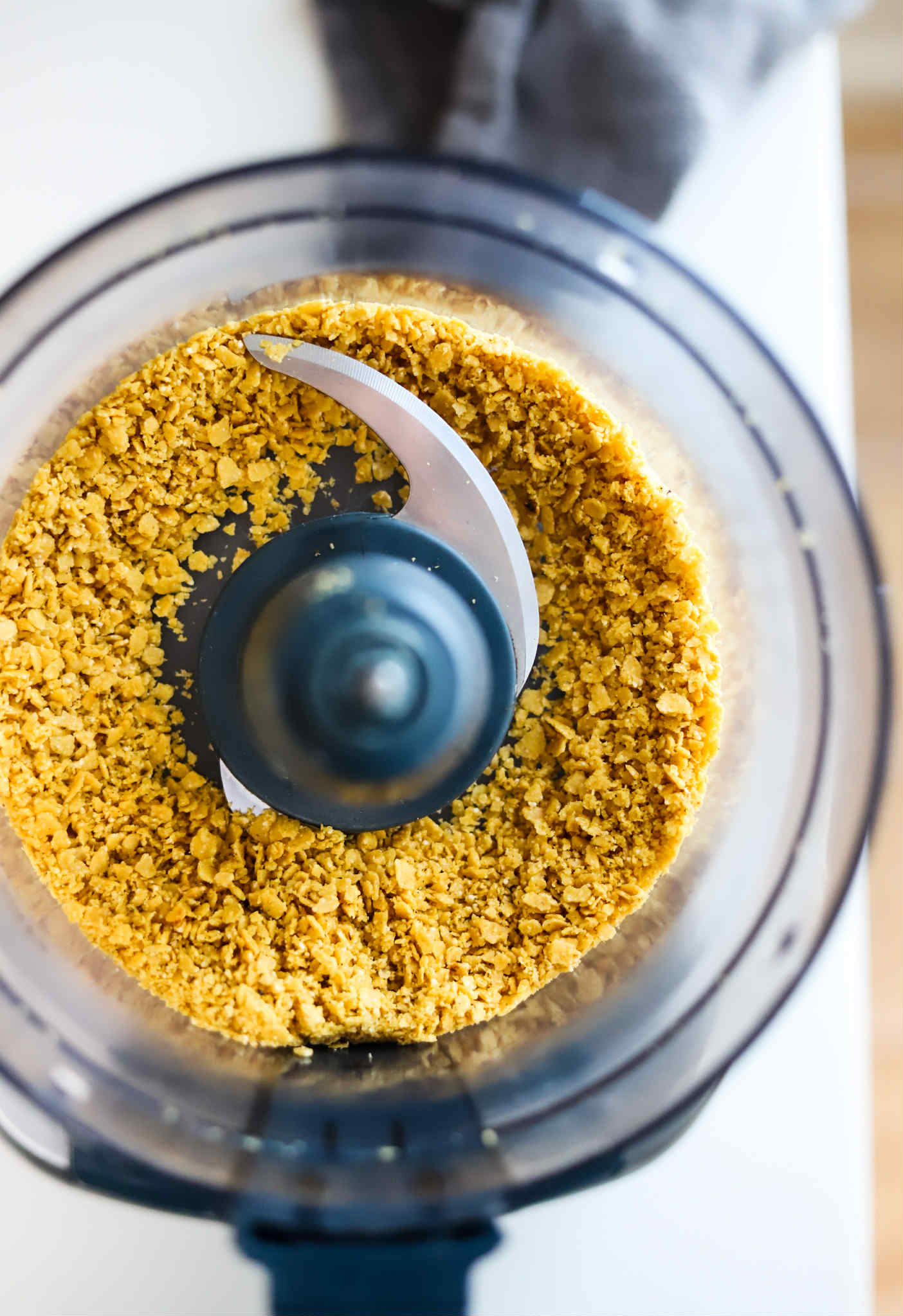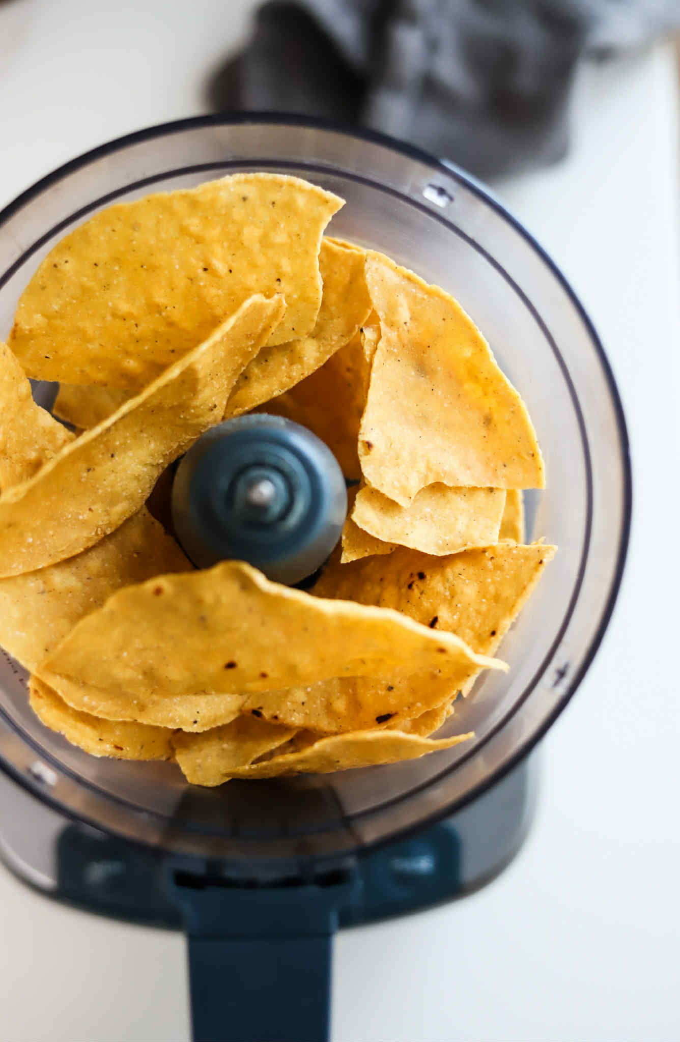 One of my favorite things about these meatballs is the ground tortillas instead of breadcrumbs. I used tostadas, because thats what I had one hand, but any crunchy chip will work fine. Just pulse them in a food processor until you get a fine crumb.