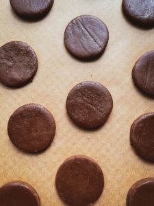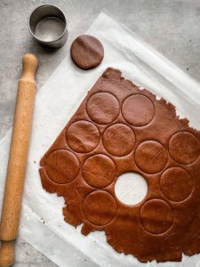 Because I am filling and dipping these cookies, I wanted to keep them on the smaller side, so I am using a one inch round cutter today, but you can make them any size you prefer!