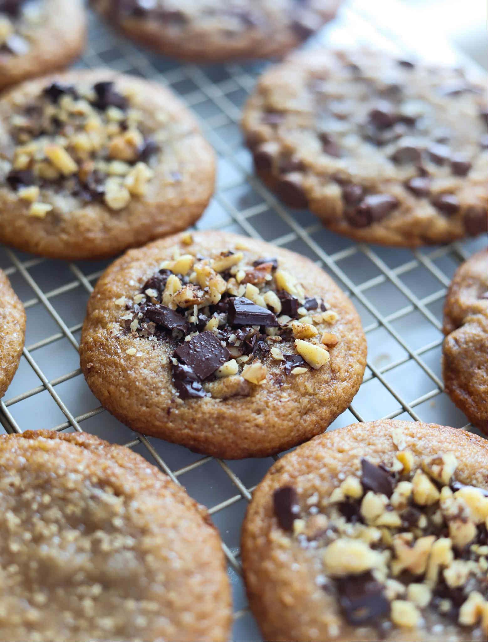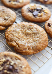 My last note is to garnish your cookies a little bit after you pull them out of the oven. I love adding a couple of extra chocolate chips, some crushed nuts or a little flaky sea salt over the cookies while they are nice and hot. This is purely cosmetic, but pretty cookies taste better… it’s science…
