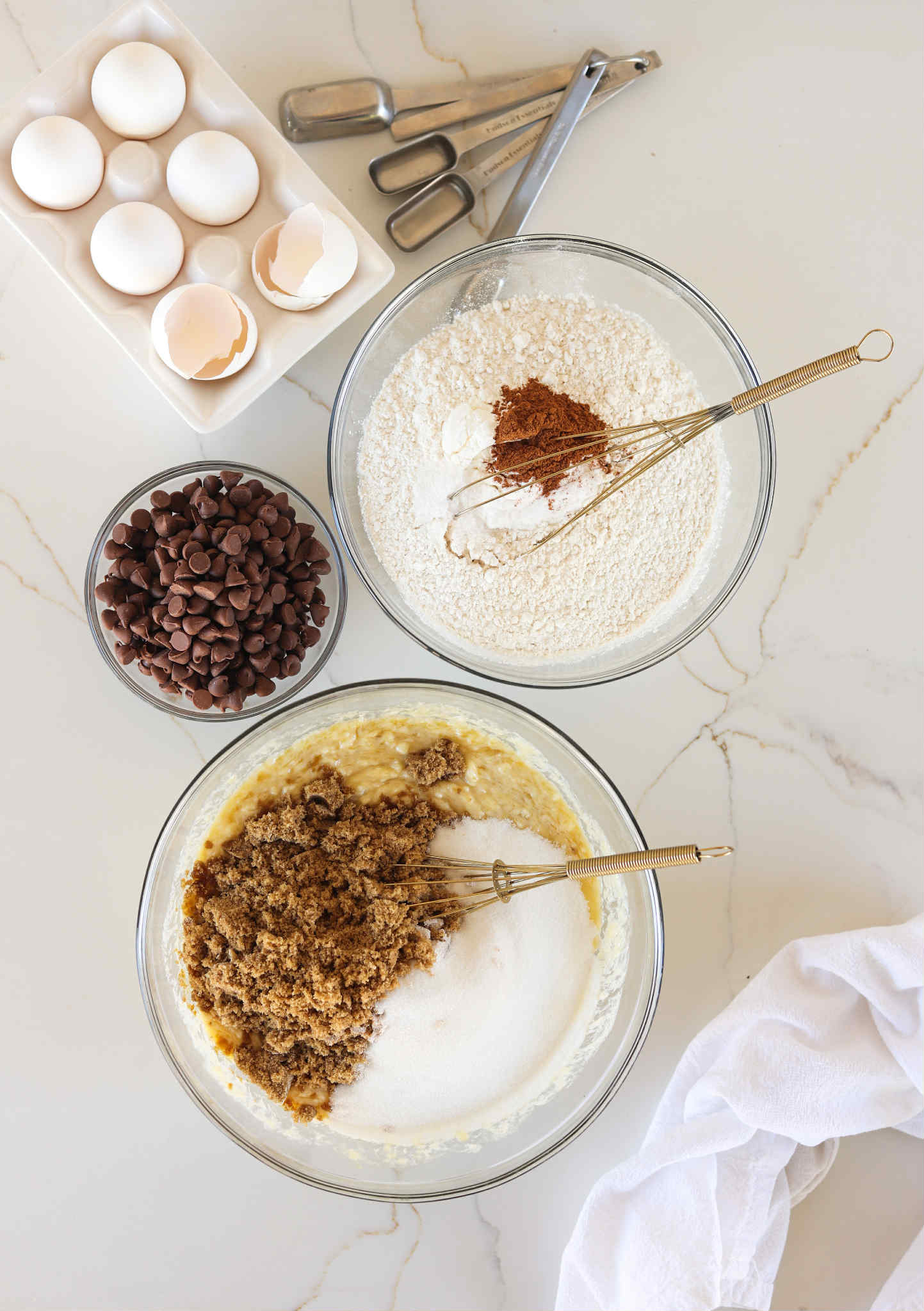 Whisk in a cup of brown sugar and 3/4 cup of granulated sugar until fully incorporated.