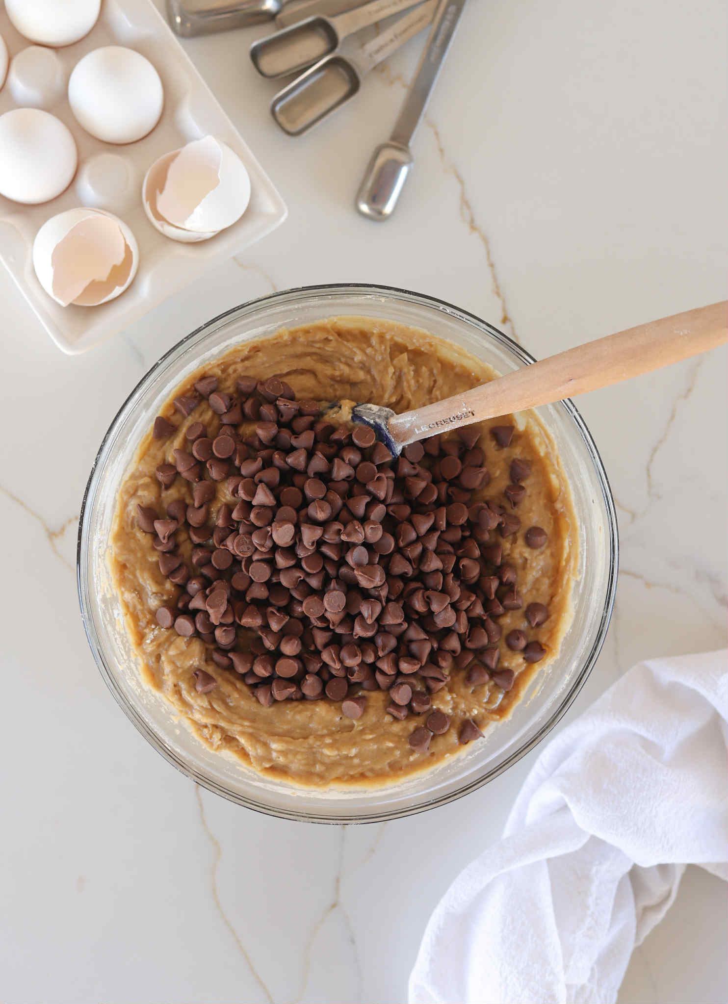 - Fold in 1 1/2 cups of chopped chocolate or chocolate chips until they are evenly distributed throughout the dough