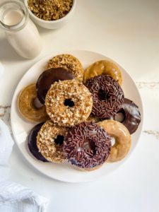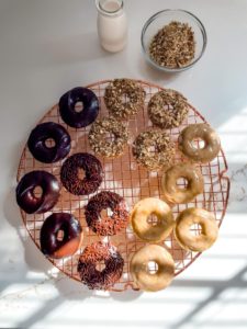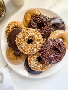 Once the doughnuts are baked and fully cooled, it is time to dress them up.