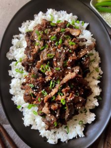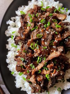 The flavors in this beef bulgogi are simply delicious. The marinade creates layers of salty, sweet and tangy flavors that keeps you coming back for more and more.