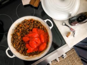 - Add 35 ounces of tomatoes and stir to combine and break them down to small pieces