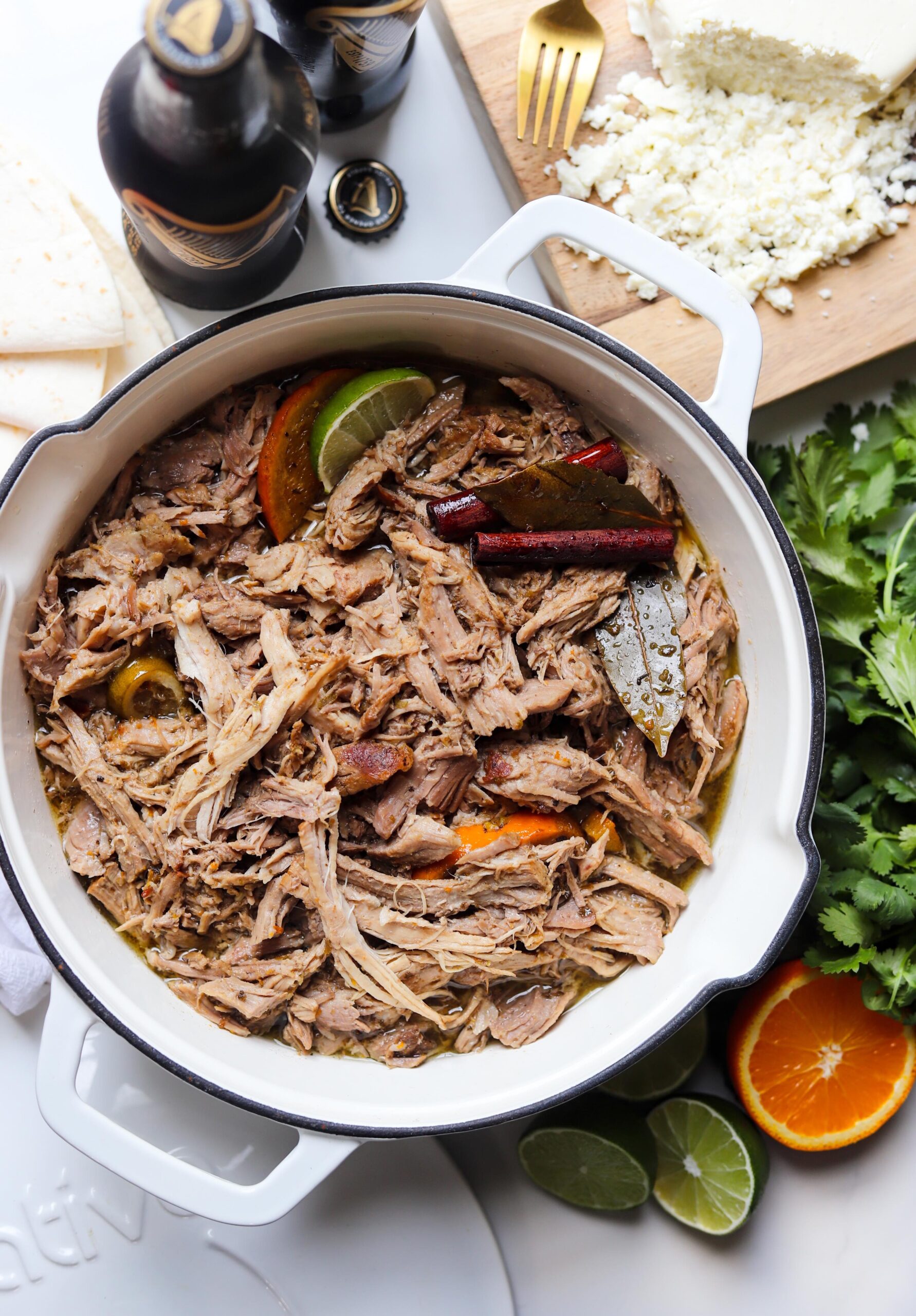 Just by looking at everything in this pot, I know this situation is going to be delicious. Now, I know that I have already made these carnitas a few times, but how can pork not turn out fabulous when it is braised in all of this goodness?