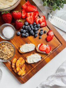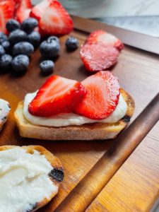 - Top each crostini with a bit of the goat cheese mixture and some fresh berries