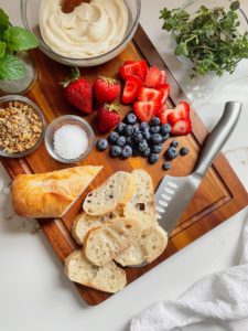 All you need to get started is a baguette, some berries, walnuts, balsamic and my quick goat cheese spread…