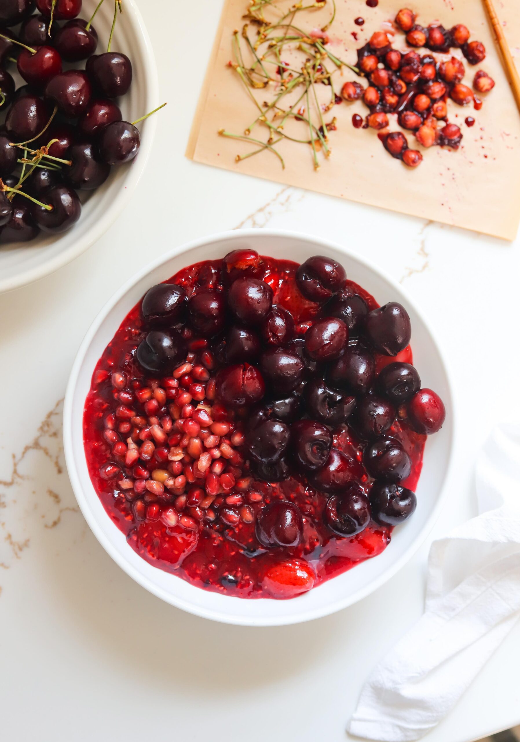 Now that the berries are ready to go, we need to add the cherries…