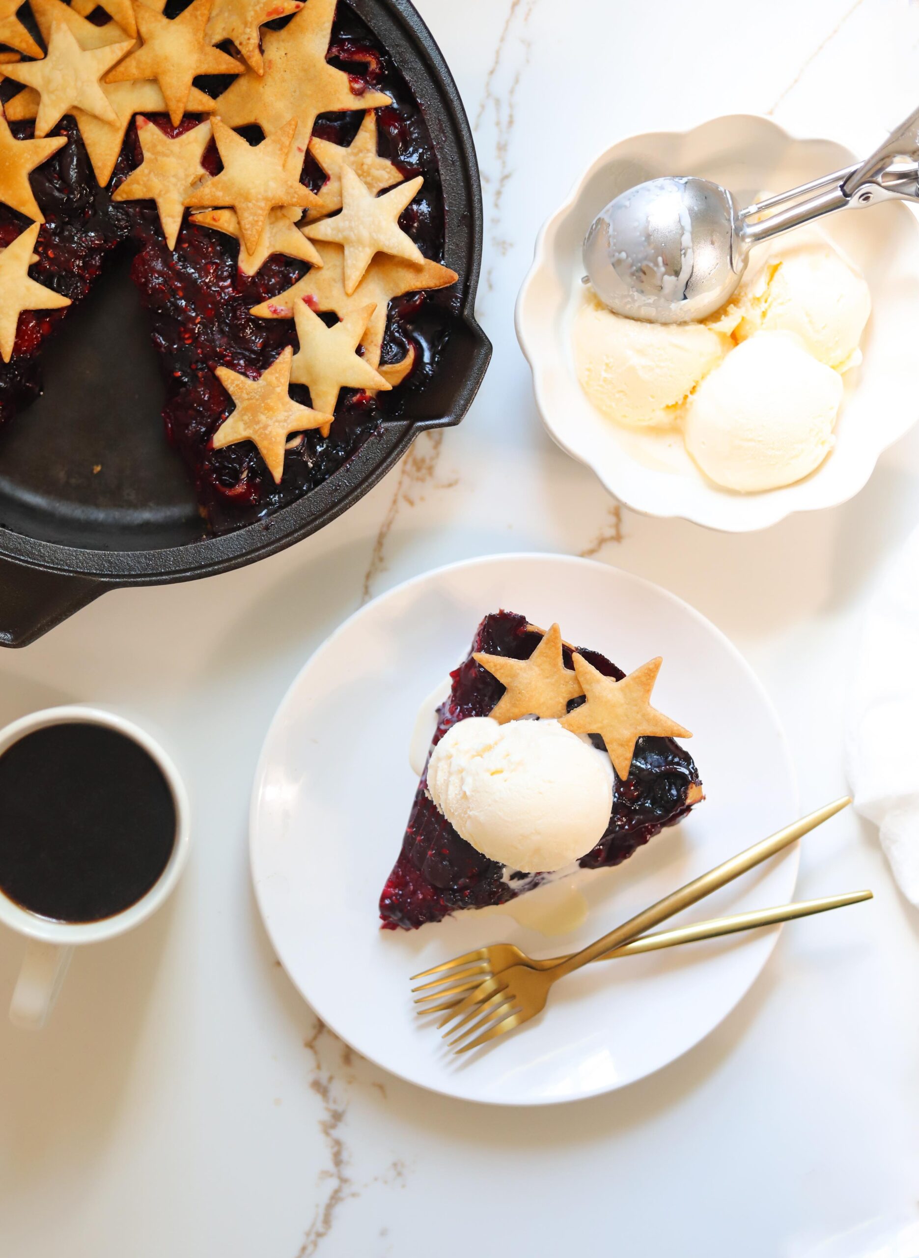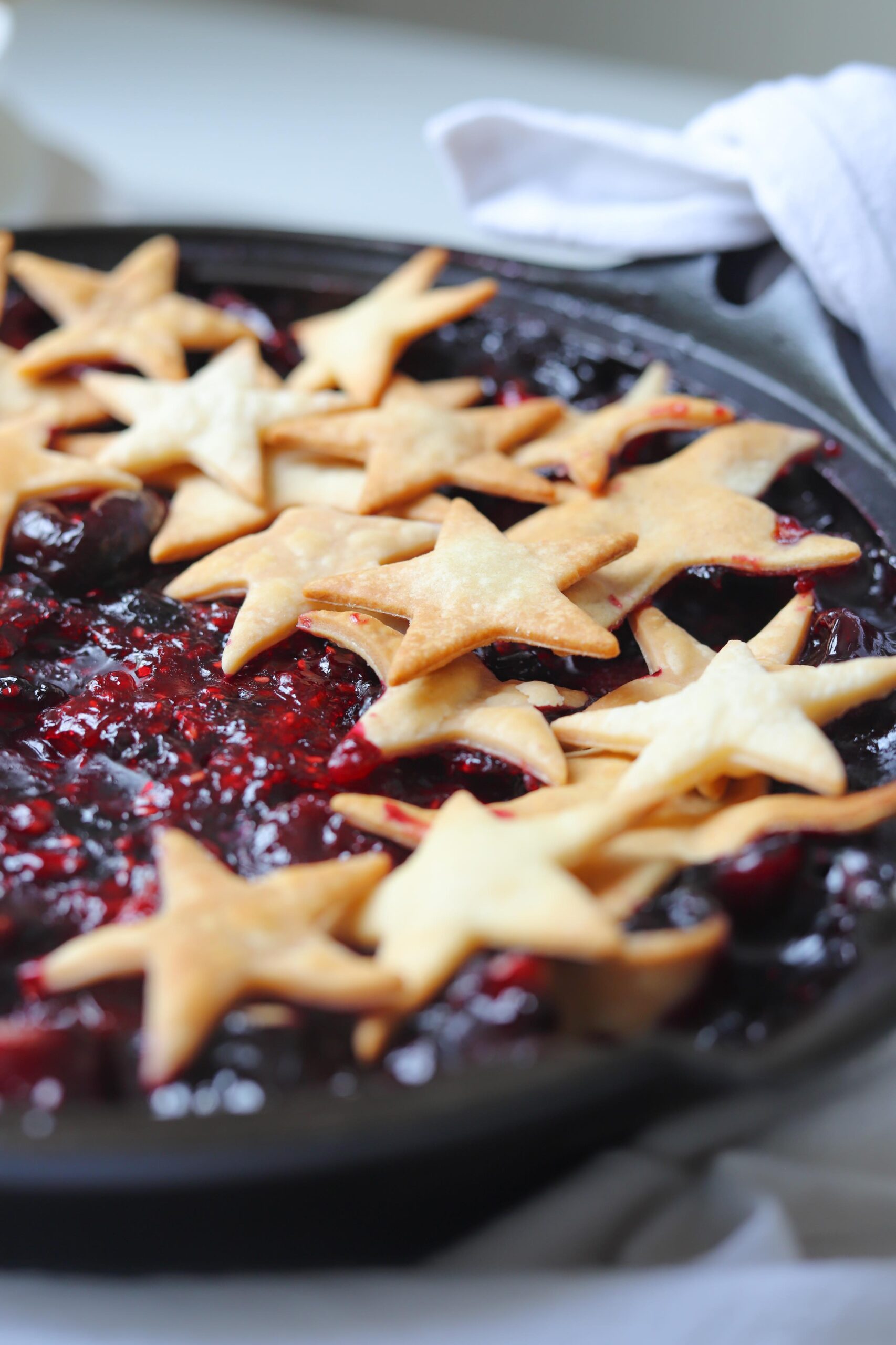 This week, we are celebrating Independence Day in the US, so I am swapping out the classic lattice top for a bunch of cheerful pie crust stars making this pie a patriotic statement piece for any 4th of July party spread.