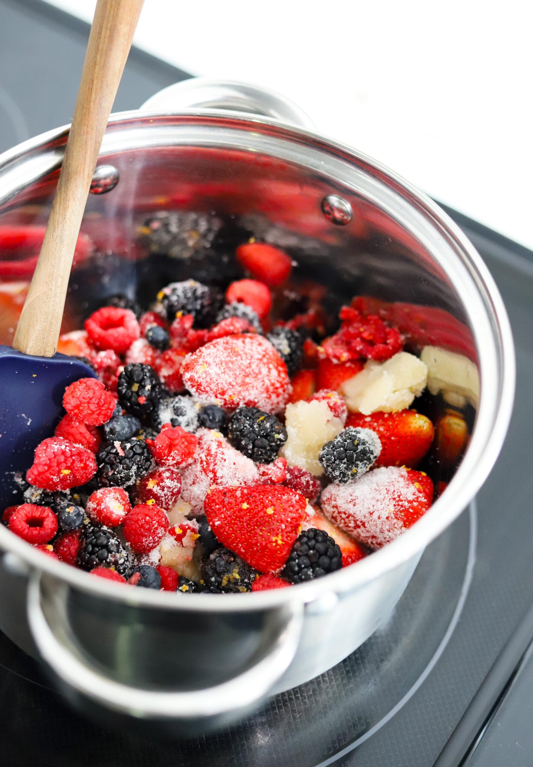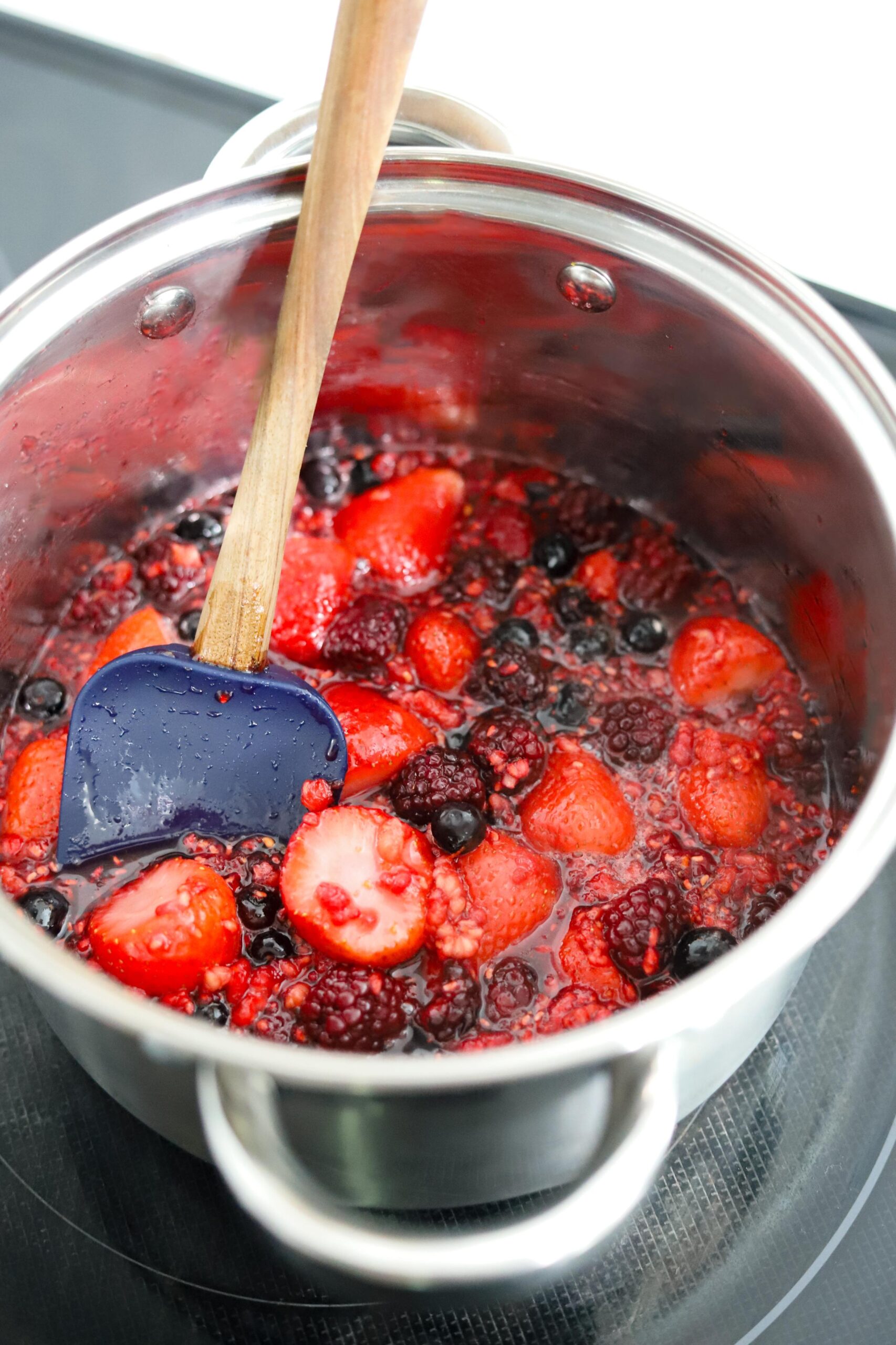 - Simmer until the berries have softened and released their juices (7-8 minutes)