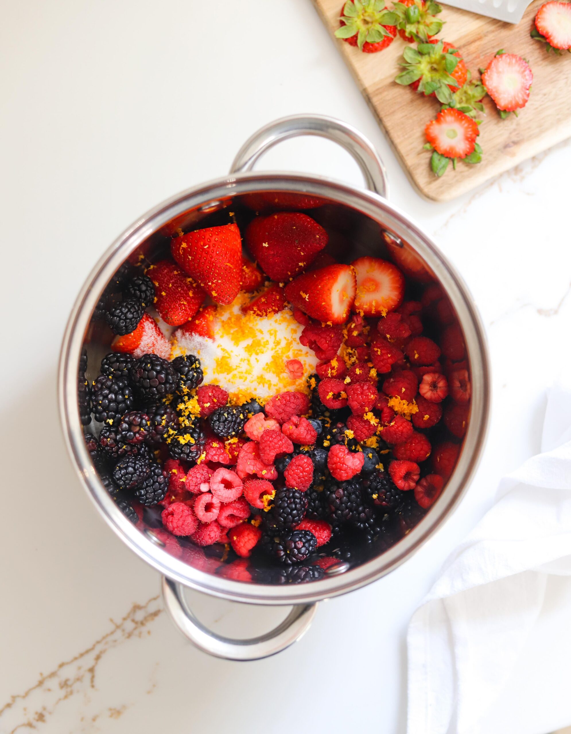 - The berries – I like using all the berries: some strawberries, raspberries, blackberries and blueberries, but if you aren’t a fan of some of them or can’t seem to find them, you can absolutely pick and choose which berries you use in your filling.