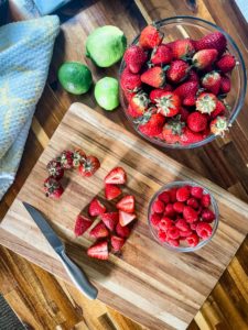 - Place the strawberries and raspberries on a baking sheet or plastic cutting board and freeze them for 1-2 hours