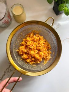 Pour the mixture through a mesh strainer and rinse the blender out quickly to remove any leftover pieces of rind.