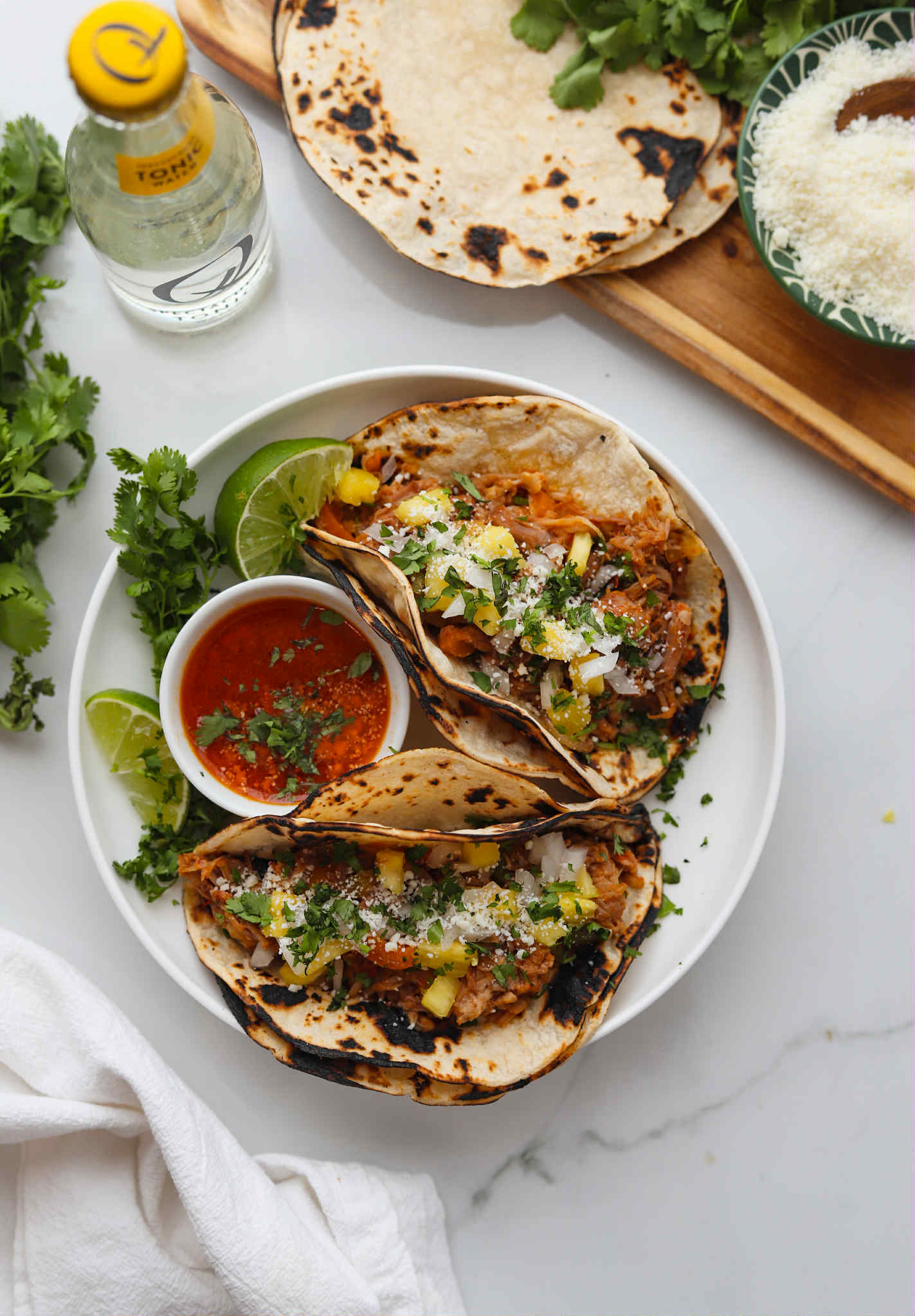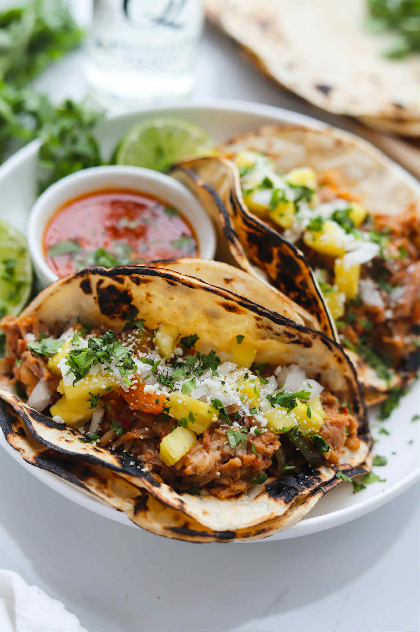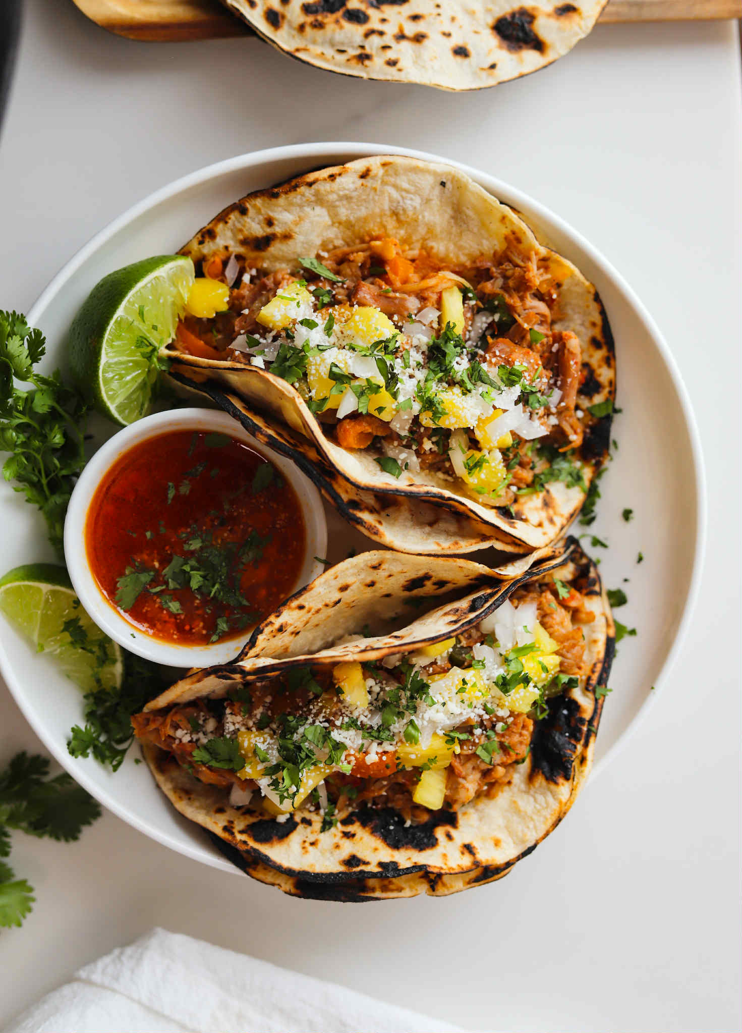 - Enjoy with tortillas, cilantro and additional diced pineapple and onions