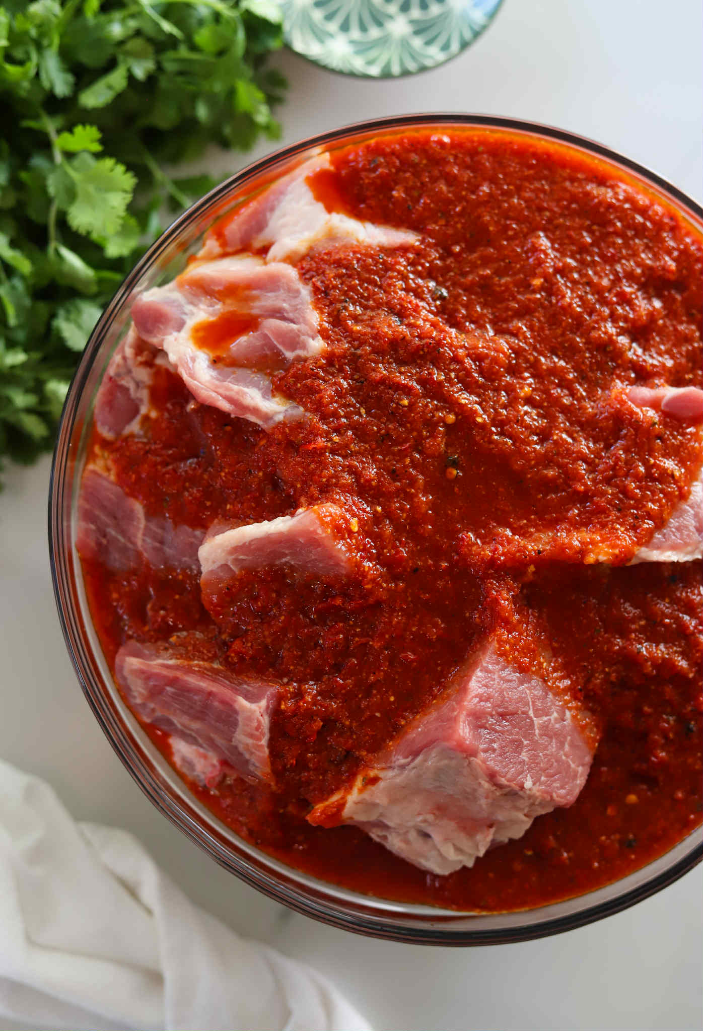 - Combine all of the marinade ingredients (including the rehydrated chilies) into a large blender or food processor and pulse until smooth