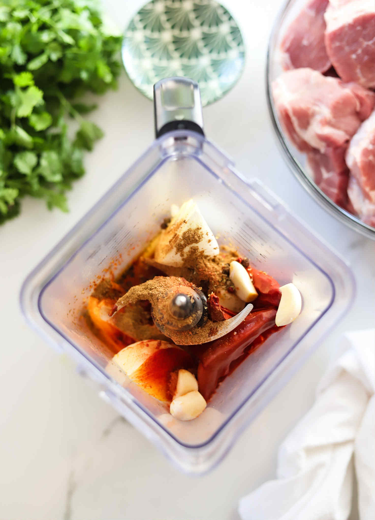 Once the rehydrated chilis are in the blender, add the remaining marinade ingredients and blend until smooth.