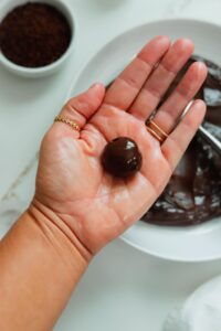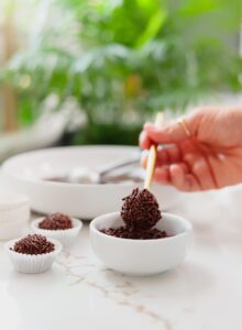 Once the mixture is chilled, it is time to shape the brigadeiro…