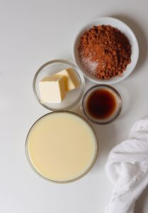 - Add 2 tablespoons of sweet cream butter, 14 ounces of sweetened condensed milk and 1/2 teaspoon of vanilla extract into a small saucepan and place over medium low heat