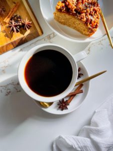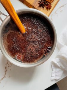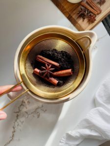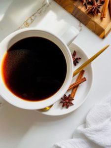 Note: This is the amount of sweetness and spice that I prefer and I would describe the balance as lightly sweet and boldly spiced. If you like your coffee on the sweet side, feel free to add more piloncillo and if you prefer your spices more mild then only add 1 cinnamon stick, clove and star anise pod.