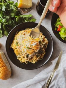 Once everything is combined, do a quick taste test and add more parmesan, if necessary (of course it’s necessary) and some finely chopped fresh parsley and a big pinch of freshly cracked black pepper.