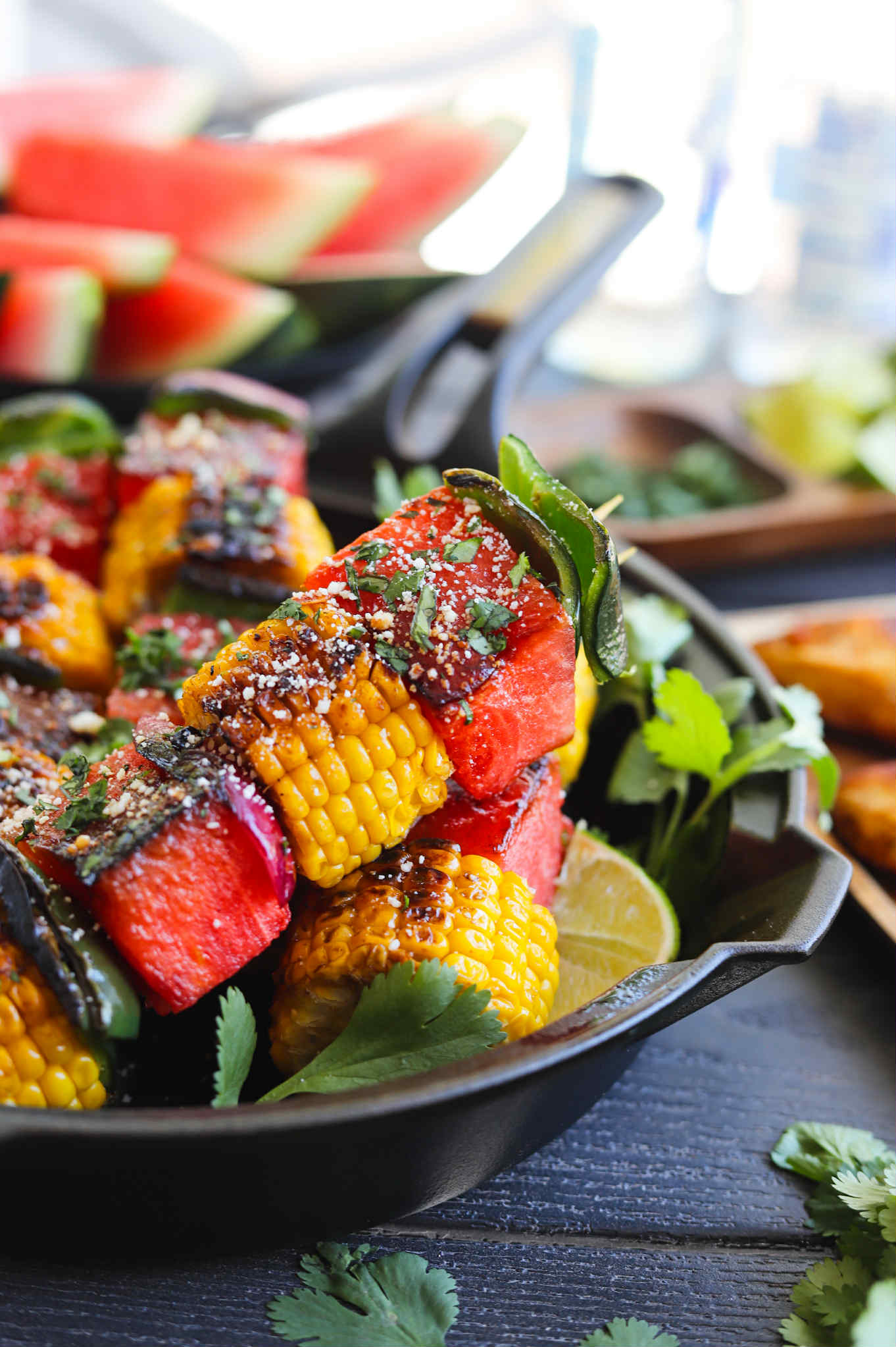 Watermelon Sweet Corn & Poblano Grilled Skewers