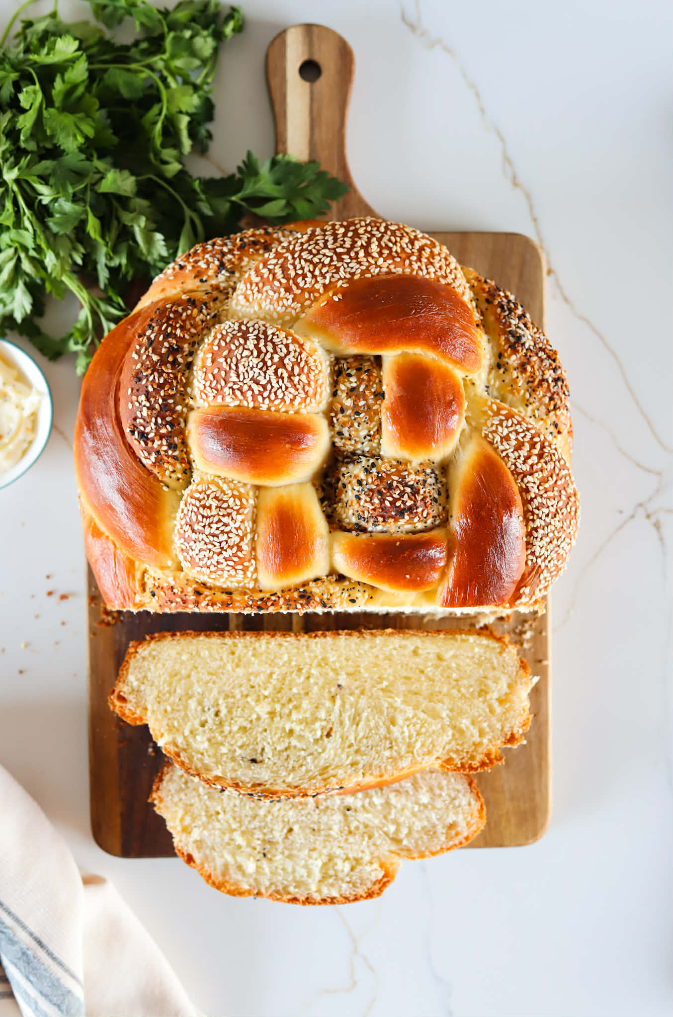 Challah is rich and tender, so this higher hydration amount requires full cooling before slicing. I know this patience is going to test your greatest abilities, but slicing into a loaf of hot challah can end with a gummy, oddly textured bread that feels underbaked and this simply will not do. Let it cool and you will be in good shape.