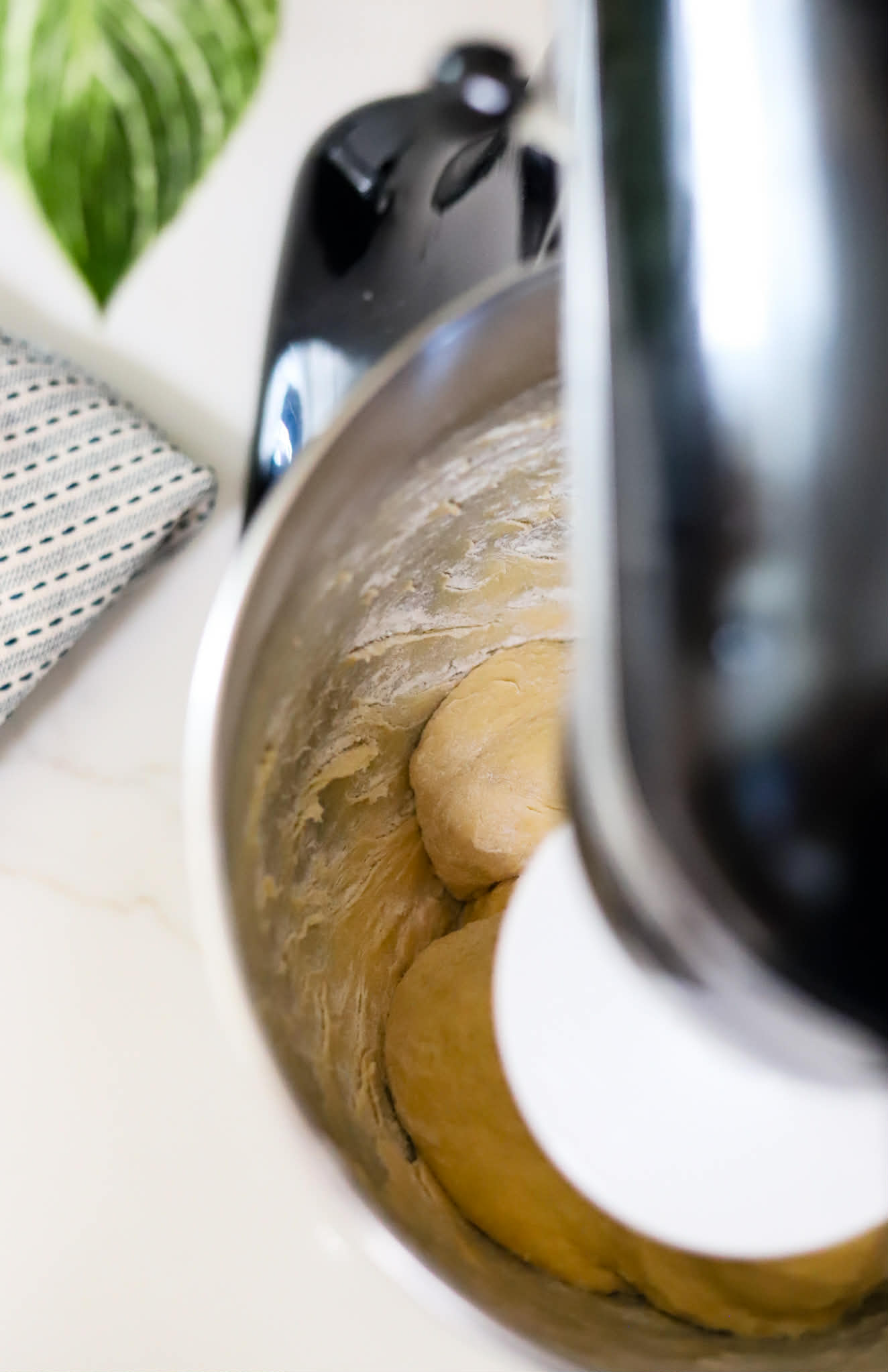 As the dough comes together, use a silicone spatula to scrape the sides and bottom of the bowl to make sure that all of the dry ingredients get incorporated into the dough.