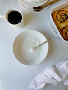 Transfer the rolls onto cooling rack to cool for a few minutes while you make a simple vanilla glaze.