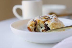 The vanilla glaze rounds everything out perfectly in my opinion. If you add the glaze while the rolls are still hot, it will make its way into all of the nooks and crevices and add a little extra sweetness and moisture to the rolls.