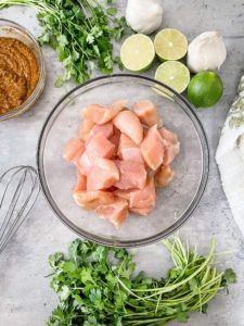 - 2-3 pounds of boneless skinless chicken breasts, cubed