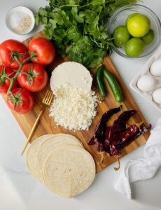 - Rojo Sauce: The sauce is the star of the show here. It is made with rehydrated dried ancho or guajillo chilies, charred tomatoes, onions and jalapeños, some garlic and cumin. It is smokey, it is rich, it is packed with flavor. You are going to love it.