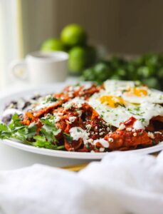 Chilaquiles rojos is one of those satisfying, comforting dishes that works for breakfast, brunch or dinner. It is something that I love to make for friends and family, but I also love making it for myself. After just a little bit of work, you will be richly rewarded with a truly fabulous meal.