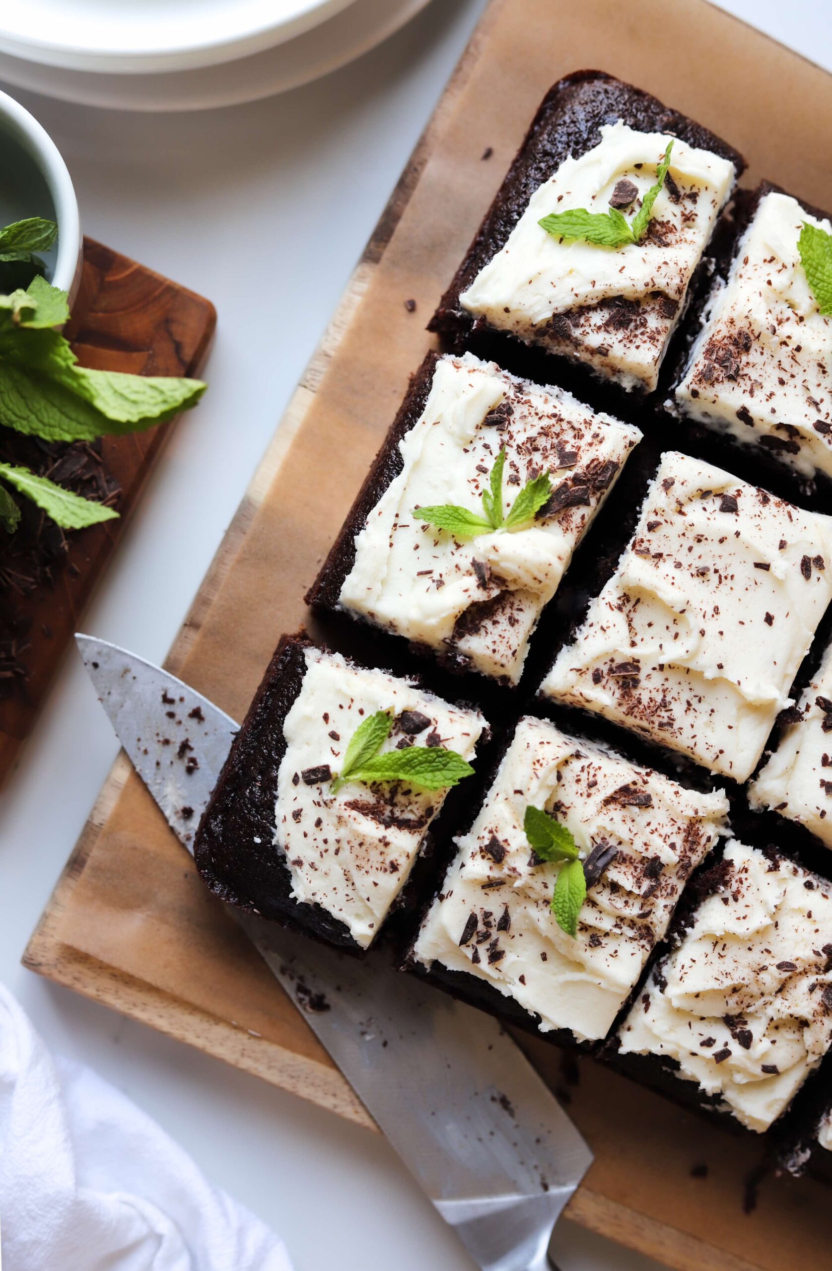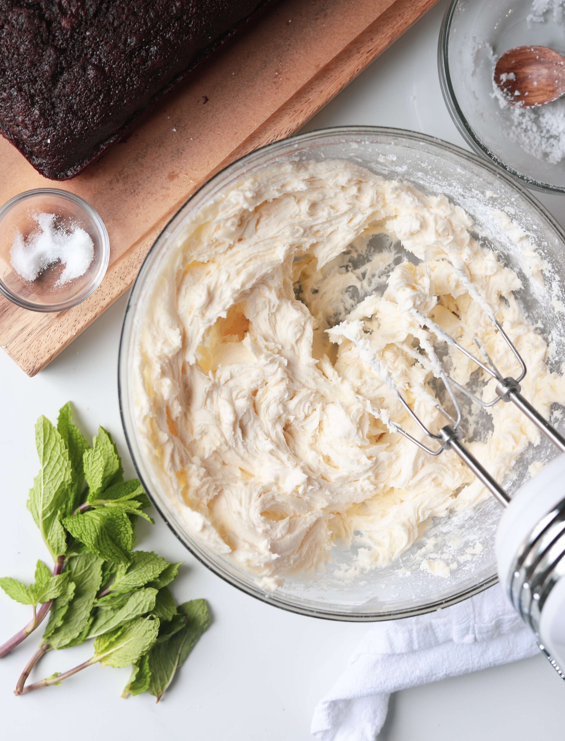When it comes to the flavors of this frosting, you have some room to play with them a little. I personally loved the mint flavor achieved by using just fresh spearmint, but if you want more of a minty kick then you could add a few drops of mint extract. If you find the herbiness of fresh mint too earthy then I suggest adding a teaspoon of pure vanilla extract to soften the flavor a bit.