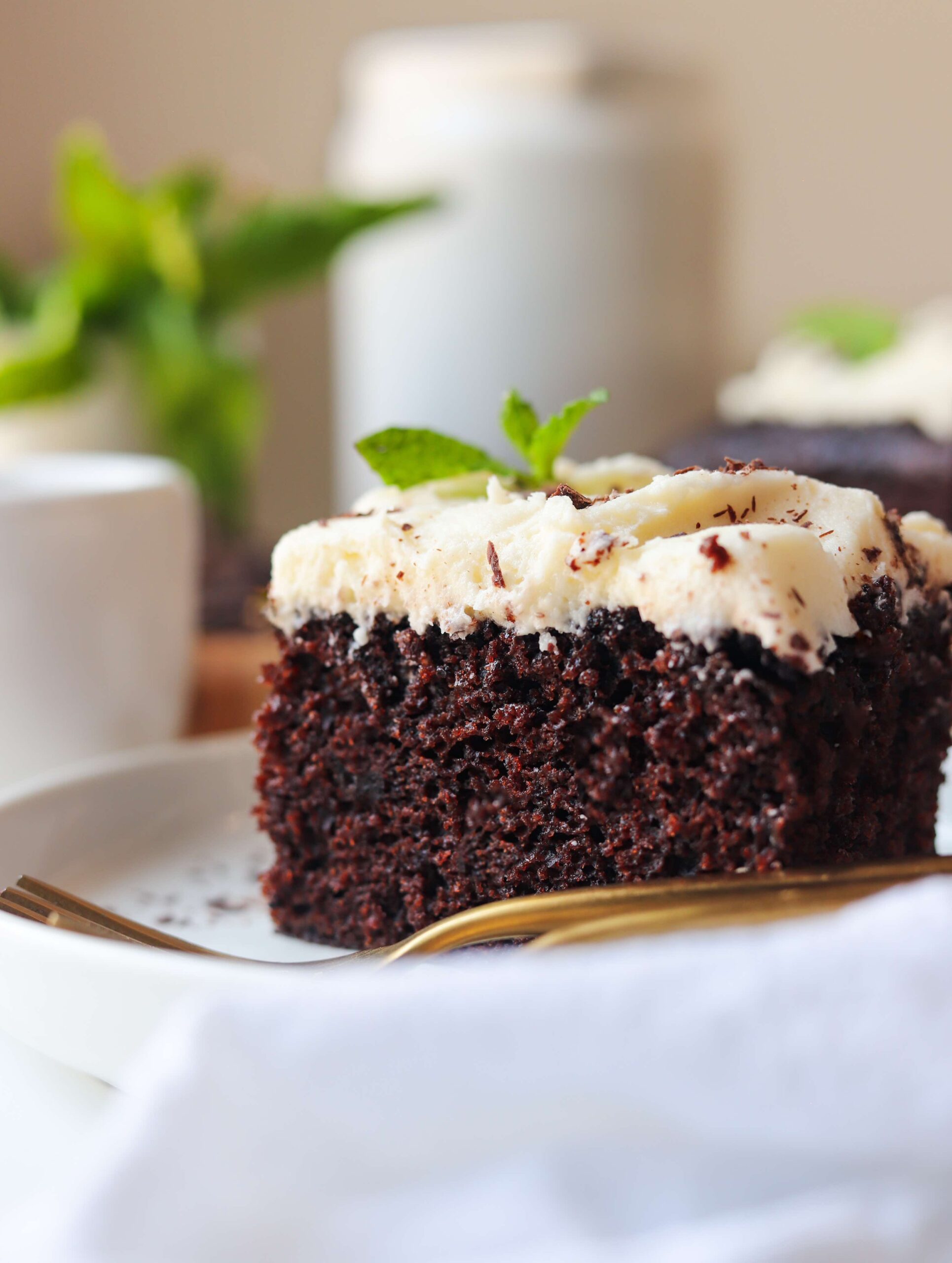 There are many classic flavor combinations that we all know and love, but chocolate and mint will forever be my favorite duo. There is just something about the way that the rich decadence of chocolate pairs with the crisp freshness of mint. It feels right and today, we are baking up a cake that celebrates this magical couple.