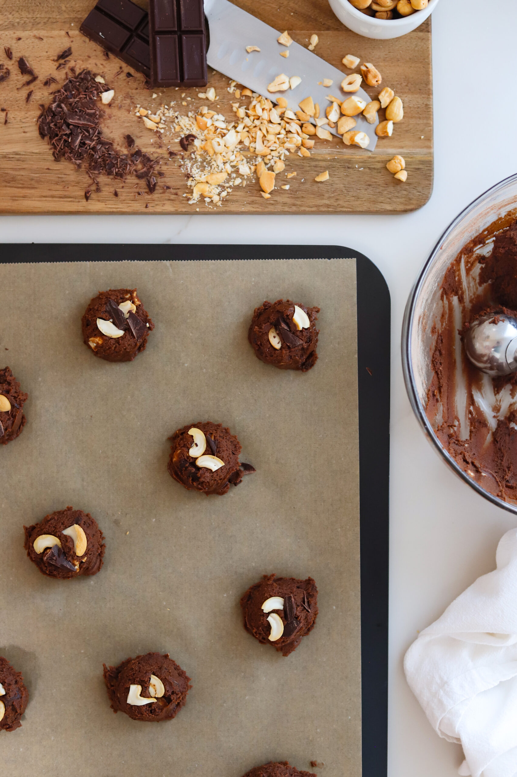 I love pressing a few more pieces of chocolate and cashew onto top of each portion so each cookies has a little garnish on top.
