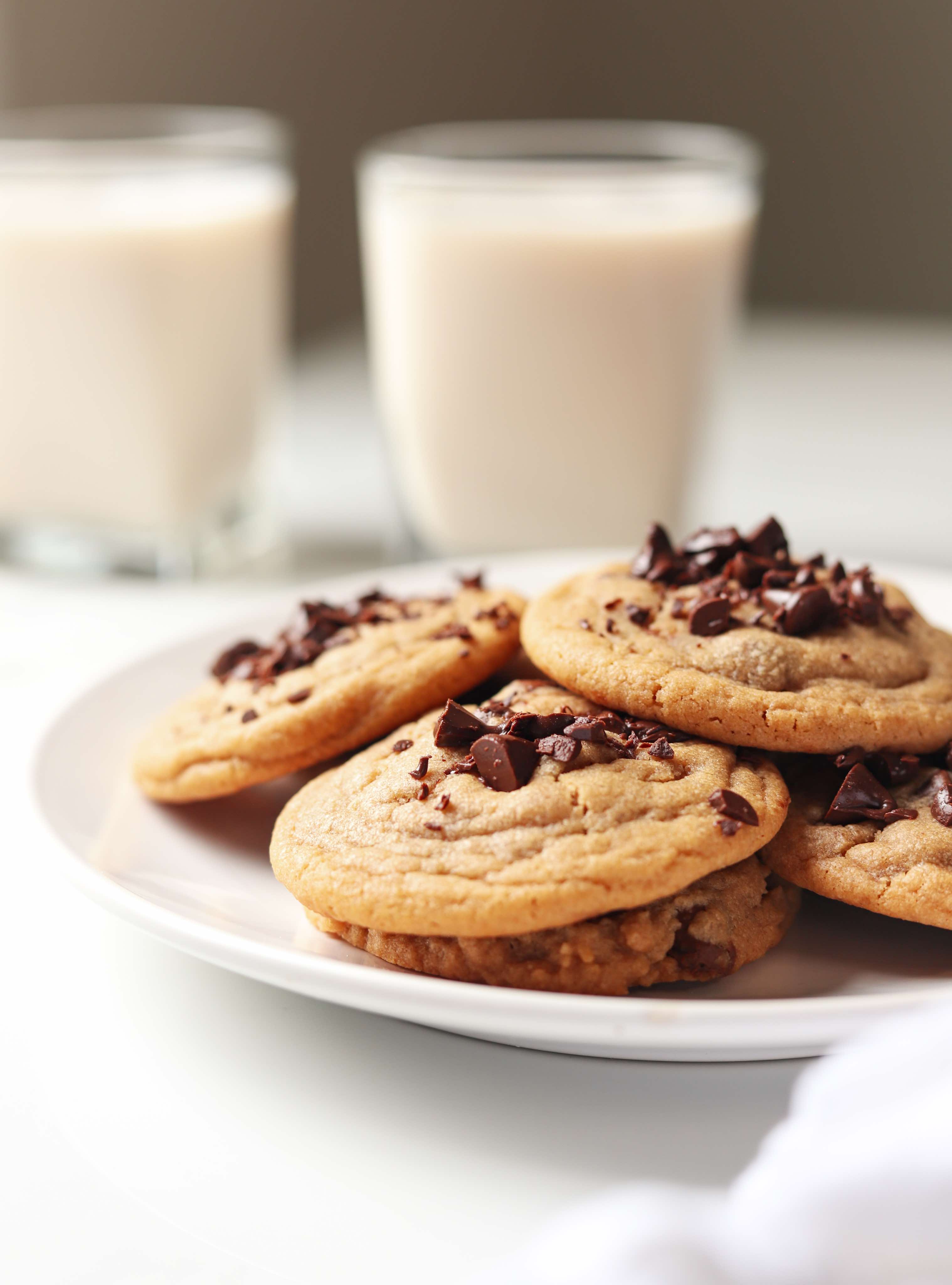 When I started adding these cooking to my recipe list, I went back and forth on whether to call them “chocolate chip peanut butter cookies” or “peanut butter chocolate chip cookies”, because they are not peanut butter cookies with chocolate chips added, but they also aren’t just chocolate chip cookies. They are special. They are chocolate chip cookies with the perfect kiss of peanut butter flavor and the wonderful addition of extra protein.