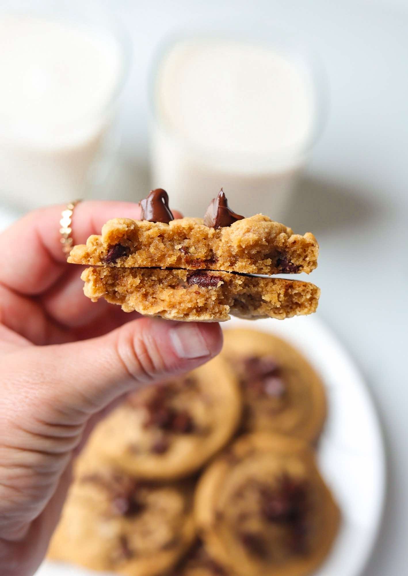 If you are looking for delicious cookies that are easy to make (no special equipment needed, no chilling of the dough required) and have a little extra protein benefits than your average cookies do, then I would love for you to give these chocolate chip peanut butter cookies a try.
