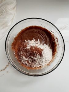 - Add 1 cup of all purpose flour, 1/3 cup of natural unsweetened cocoa powder, 1/2 teaspoon of salt, 1 teaspoon of baking powder, 1 teaspoon of vanilla and a teaspoon of espresso powder and mix until just combined