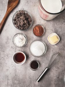 For the chocolate espresso pudding layer, you will need 1/4 cup of cornstarch, 3 tablespoons of unsweetened natural cocoa powder, 1 tablespoon of instant espresso powder, 3 cups of half and half, 1/2 cup of granulated sugar, 6 ounces of chopped semi-sweet chocolate, 2 teaspoons of vanilla extract and 2 tablespoons of butter.