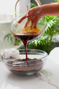 - Add the wet ingredients to the dry ingredients and mix until just combined