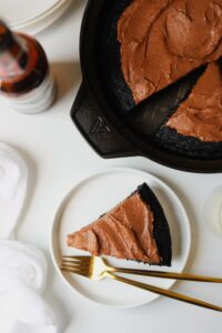 This cake is amazing and don’t worry, if you are not a beer person, it doesn’t actually taste like beer. The beer helps to intensify the chocolate flavor and add notes of caramelly coffee goodness.